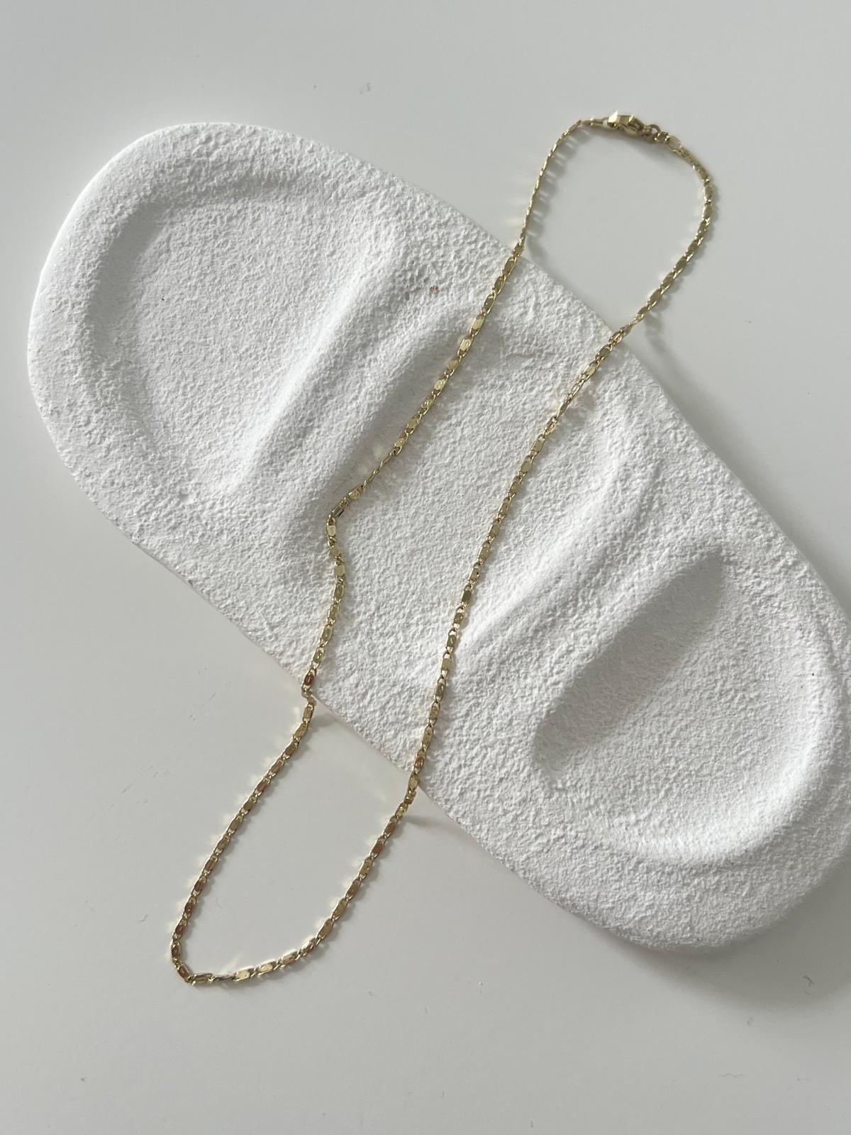 14K Gold İnce Form Ezme Desen Kolye şık ve zarif tasarımıyla boynunuzda göz kamaştıran bir aksesuar olacak. Özel davetlerde veya günlük kullanımda stilinizi tamamlayacak bu kolye, suya dayanıklı özellikleri sayesinde denizde, havuzda bile çıkarmadan kullanılabiliyor. 14K Gold İnce Form Ezme Desen Kolye çeşitli renk seçenekleri, kişisel tarzınızı yansıtmanızı sağlar. Üstün kaliteli malzemelerden üretilen 14K Gold İnce Form Ezme Desen Kolye , uzun ömürlü kullanım sunar ve her zaman parlaklığını korur. 14K Gold İnce Form Ezme Desen Kolye boynunuzda zarafet ve şıklık vurgusu yapacak ve size özgüven verecektir.