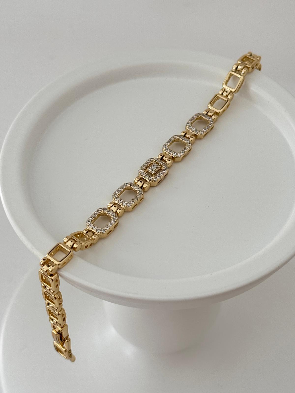 14K Gold Kare Zirkon Taşlı Bileklik