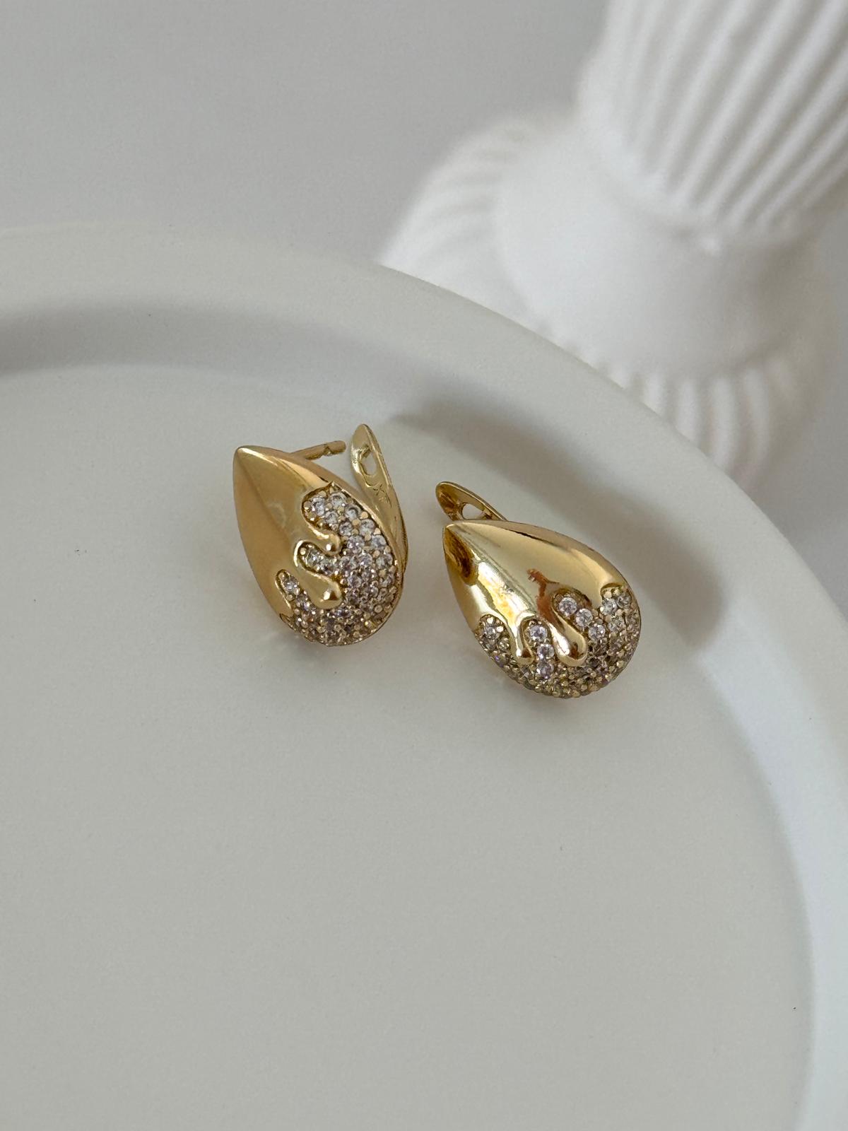 14K Gold Minimal Taş Detay Damla Küpe