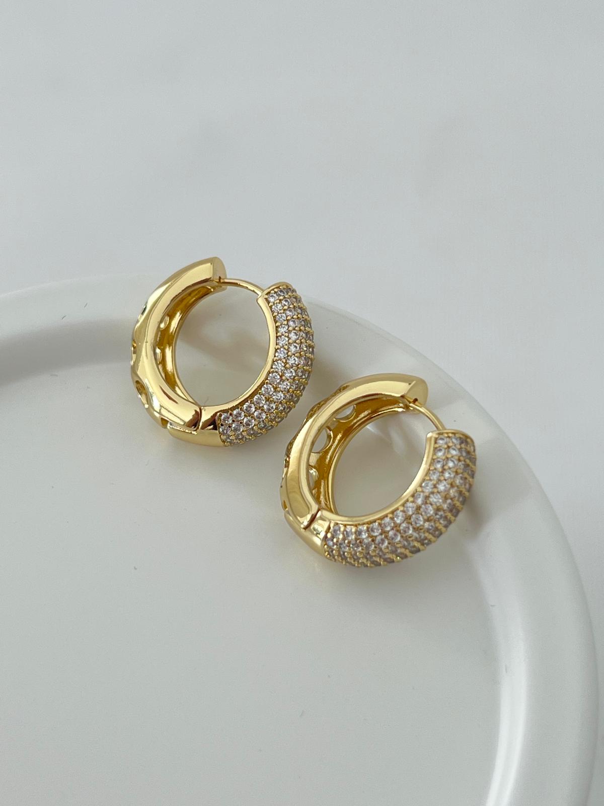 14k Gold Minimal Taşlı Halka Küpe